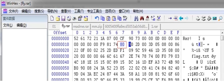 rar 文件由于有头部校验, 使用 伪加密时 打开文件会出现报错,使用winhex 修改标志位后如果报错消失且正常解压缩,说明是伪加密。使用winhex 打开rar 文件,找到第24个字节,该字节尾数为4 表示加密,0表示无加密,将尾数改为0即可破解伪加密