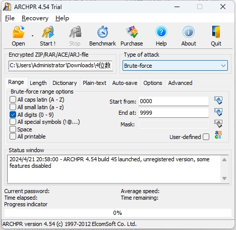 如果是真加密也不用担心,密码一般都不会太复杂,而且一般都会给出密码位数(在爆破工具中要选择位数),它主要考察有没有暴力破解的工具和技术