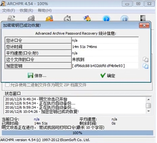 有时候不一定能破解出文件口令,但是能够找到加密密钥等信息,可以直接将文件解密,点解确定保存解密后的文件即可