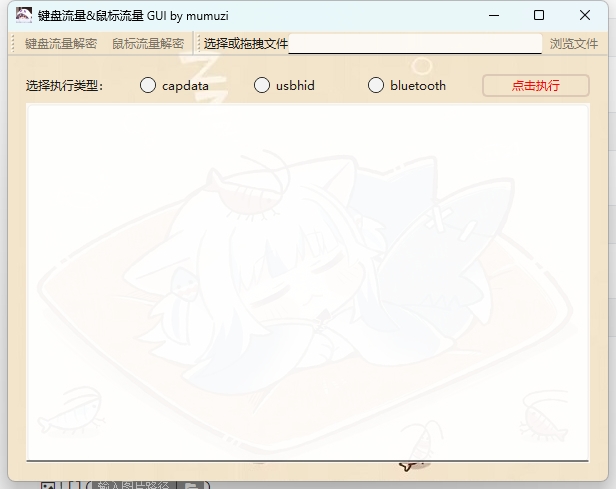 - 选择要提取的数据,选择键盘或者鼠标流量,将cap文件拖入程序中即可